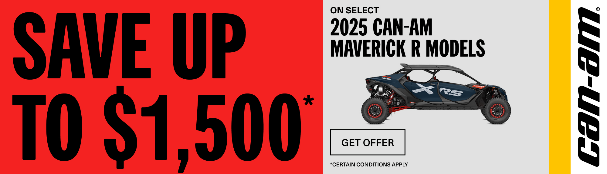 Rebate of up to $1,500 on select 2025 Can-Am Maverick R models